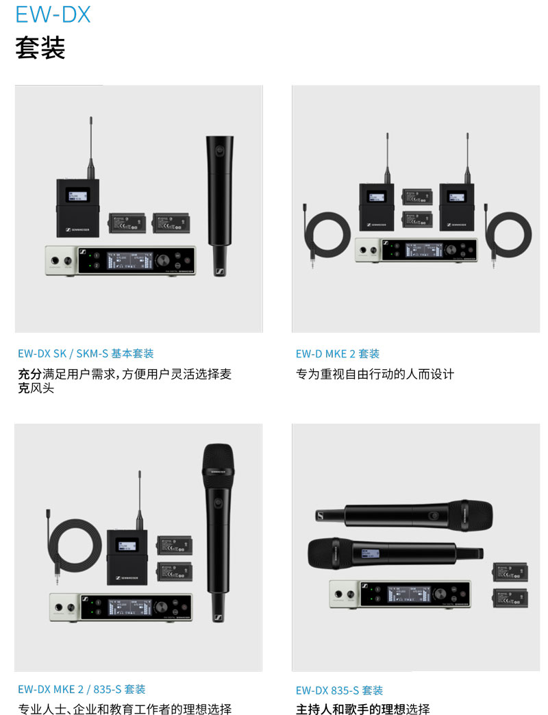 森海赛尔EW-D无线系统兼容多款Sennheiser麦克风,您可根据需求随意搭配选择。